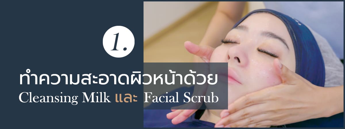 1. ทำความสะอาดผิวหน้าด้วย Cleansing และ Scrub